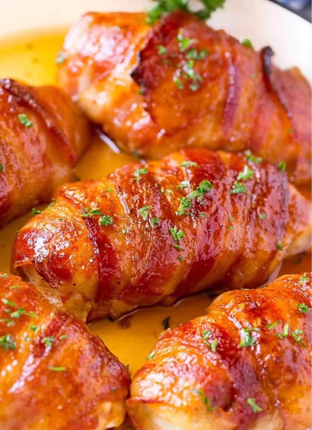 Chicken Basted with House Sticky BBQ DEMI – Stuffed w/Brisket -Baked